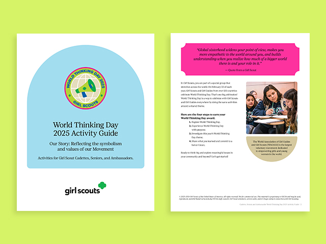 Using the link below, you can now download the free Cadette, Senior, Ambassador World Thinking Day activity guide to do at home or with your Girl Scout troop.