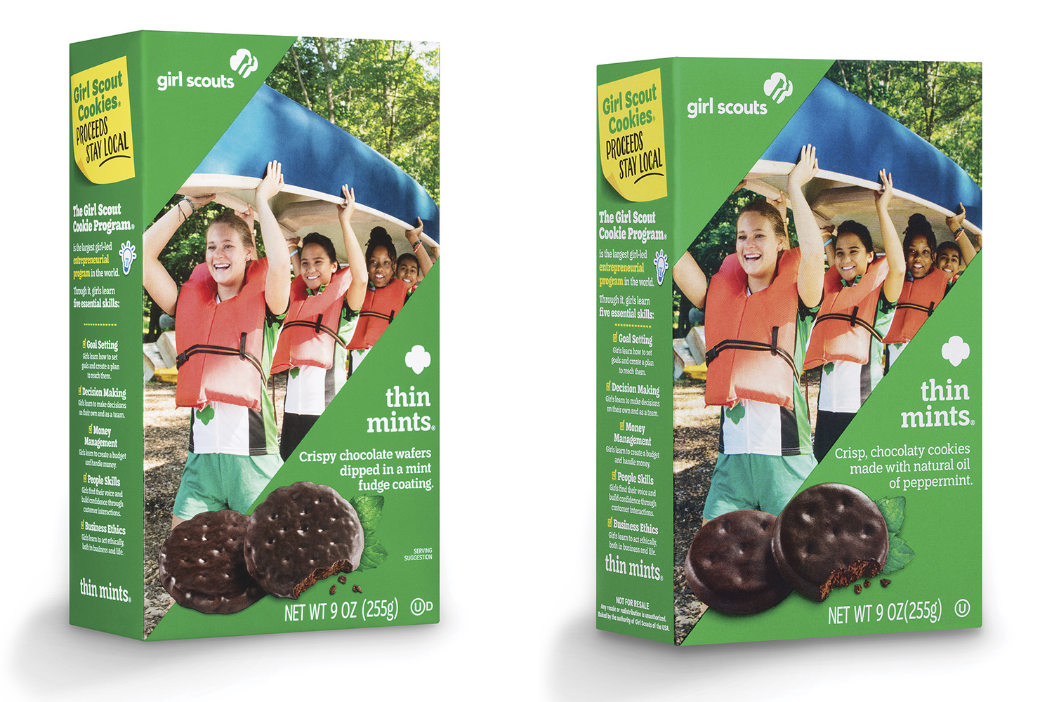 Trinity enjoys the great outdoors with her Girl Scout sisters on the new Thin Mints ®️ Girl Scout Cookie box!