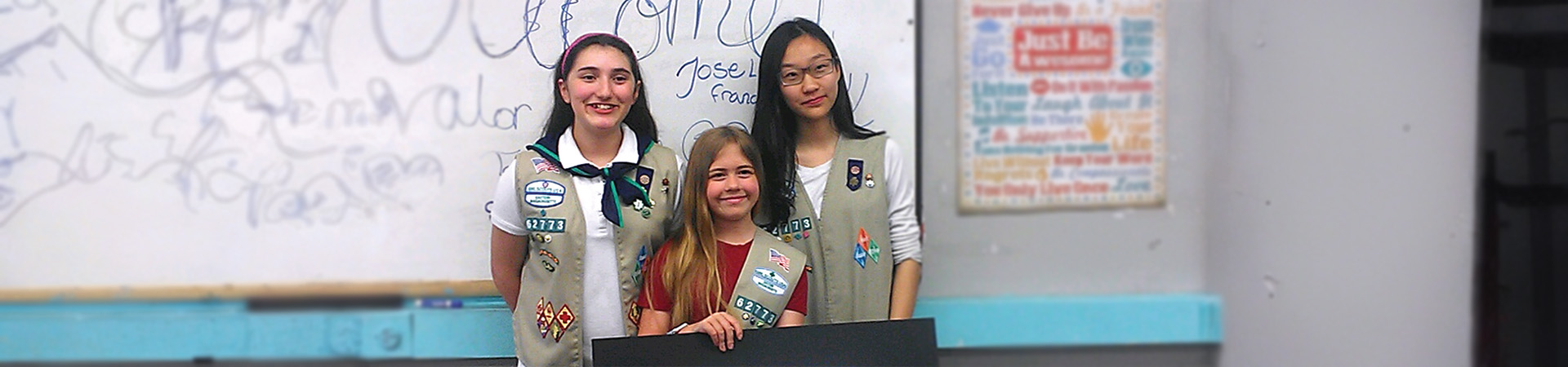 Here’s how it works: Throughout the school year, a group of about a dozen sixth, seventh and eighth-graders who speak English as a second language (ESL) and want to improve, meet up with Veronica, Morgan, and Ariel after school at Constentino Middle School to teach each other. They do homework, play games, most of which the girls created themselves, and, most importantly, build community. Each session lasts an hour and a half and kicks off with the three Girl Scouts addressing the group in Spanish. The ESL students then try to translate. Starting off this way helps everyone gain confidence, and sets a positive, productive tone for the remainder of the session. This element of equal exchange is critical to Veronica’s mission to give every student a strong sense of involvement and it firmly reinforces that everyone in the room has valuable skills to offer one another. That’s so Girl Scouts!